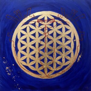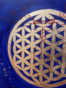 Mandala KOSMOS 1/ COSMOS 1, technika mieszana/ mixed media : akryl i szlagmetal/acrylic and molded metal, wym./dim. 40 cm x 40 cm, 2025